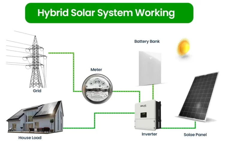 A hybrid solar system consists of several essential components that work together to generate and store electricity from the sun. These components include solar panels, a DCDB (Direct Current Distribution Box), One or multiple Charge Controllers, an Alternating Current Distribution Box and backup batteries like Tesla Powerwall 3.